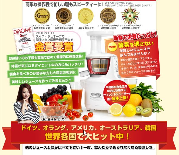 石臼式低速ジューサー『クビンス サイレントジューサー』は、